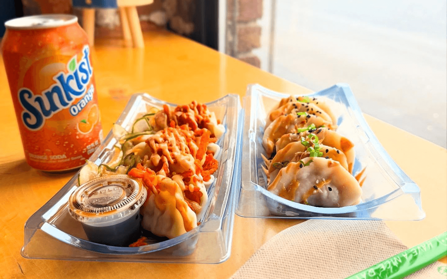 Super fresh quality ingredients. Love the spicy pork dumplings. The chili crisp they use is delicious. I love their dollar dumpling deals. The Korean BBQ bao buns shouldn’t be missed either!